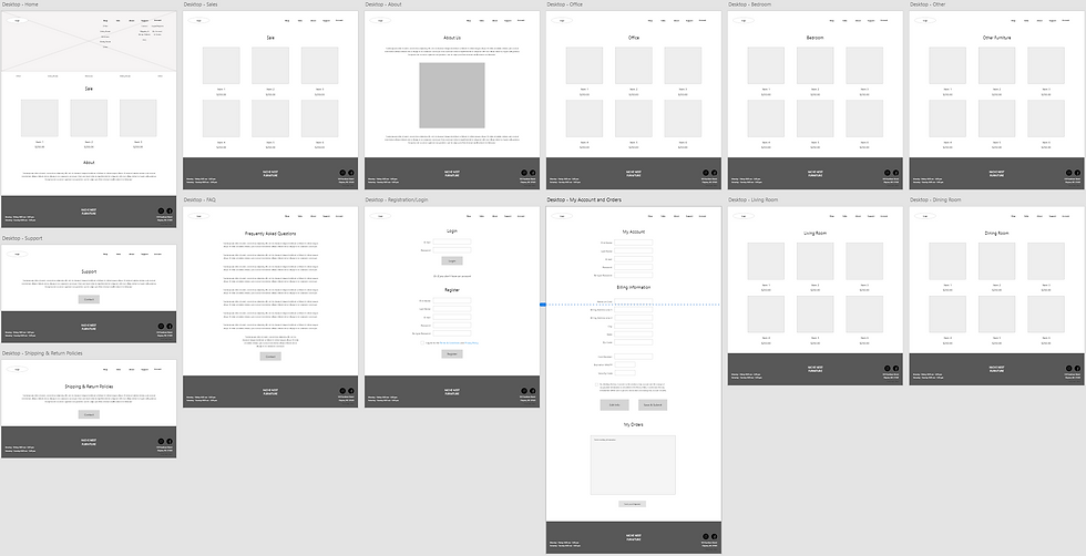 I researched other furniture websites and felt it would be best to have a minimal navigation with a big emphasis on categorizing by room.